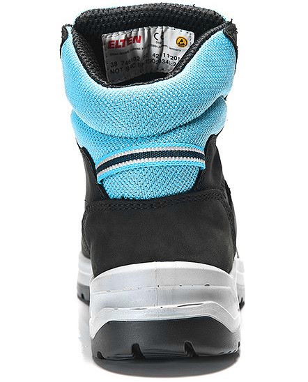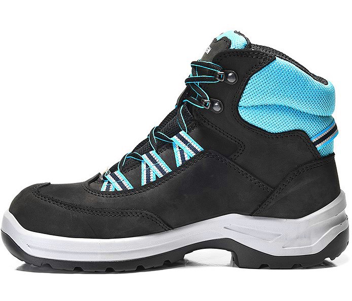 Azure blue eye-catcher - Also suitable for outdoor use: The robust LOTTE aqua Mid ESD S2 is water and dirt repellent due to its upper material made of hydrophobic nubuck leather and the textile material CORDURA®. The SRC-certified PU/PU outsole also helps to increase stability on rough terrain. This model, which was specially developed for women, has an inserted steel toe cap that provides additional protection for the forefoot area. The breathable textile lining ensures a pleasant shoe climate for this ESD-compatible safety boot. The LOTTE aqua Mid ESD S2 is available in sizes 34 to 42.
