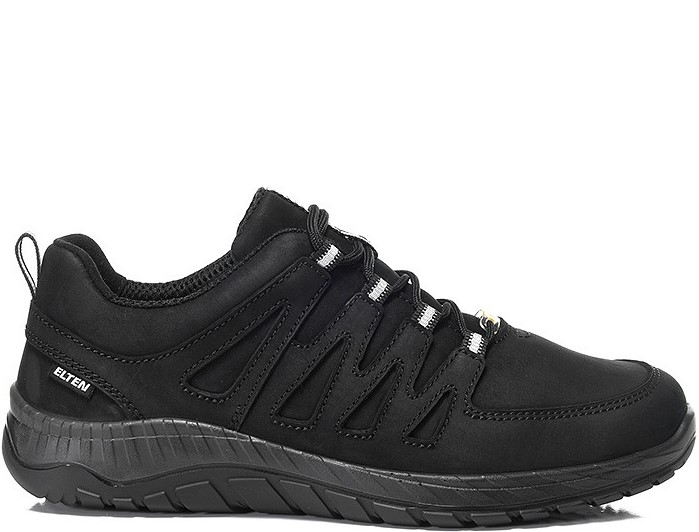 The MADDOX black leather Low ESD O2 is the sporty and stylish version of the popular MADDOX series. The upper material of the work shoe is made of hydrophobic nubuck leather - this repels liquids and is extremely resistant. It also gives the all-black shoe an elegant and cool look. Wearing comfort is also a top priority for the MADDOX black leather Low ESD O2. In the sole core of the innovative and slip-resistant MAXXIMO outsole, the high-tech material Infinergy® from BASF provides excellent cushioning by absorbing the energy expended during walking and returning a large part of it to the wearer. Joints and tendons are permanently protected. In addition, the breathable textile lining guarantees a pleasant foot climate and thanks to the equipment without a toe cap, the work shoe is as light as a sneaker. The ESD-capable shoe of the ELTEN WELLMAXX series is available in sizes 36 to 49.