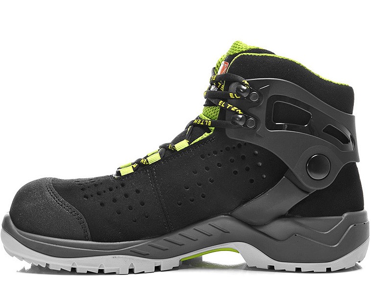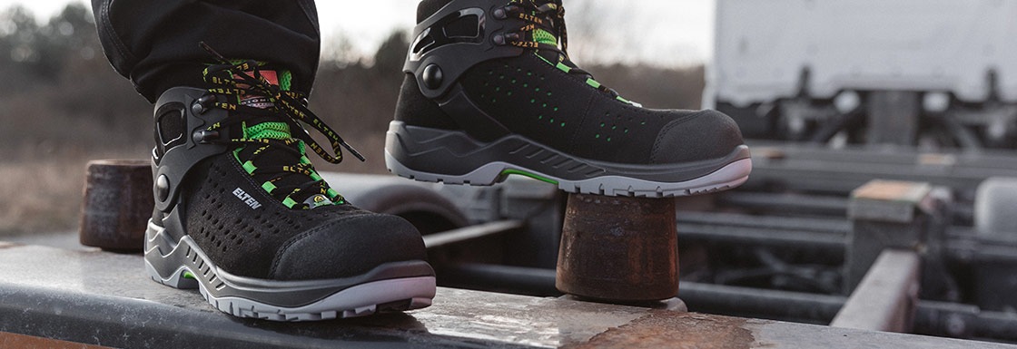 Distinguished with the Plus X Award for highest quality and functionality, the safety boot TOMMASO green Mid ESD S1P is a very special model from ELTEN. The airy boot is equipped with the Biomex Protection wrist cuff. This protects the ankle joint from injuries due to buckling as a result of so-called SRS accidents. Accidents caused by stumbling, slipping and falling. The light and filigree ankle boot supports the natural movement of the foot and only intervenes when stabilization is needed. The TOMMASO green Mid ESD S1P is designed for dry working areas such as warehouses, logistics or transport, where changing surfaces or difficult terrain can lead to frequent roll-over accidents. The ESD-compatible safety boot is especially breathable and tear-resistant thanks to light microfibre. In addition to the ankle cuff, the Biomex Dynamics outsole supports the natural rolling movement of the foot and allows a walking dynamic that corresponds to the human gait. In addition to modern technolog