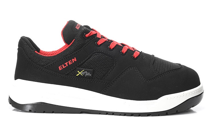 Once a fan of our ELTEN Lakers, always a fan of our Lakers. You can understand that, because the LAKERS M black Low ESD S1PS also has a lot that makes it a real favorite safety shoe. Very sporty in design, sure-footed thanks to its double PU outsole and top cushioning, cool black-white-red look and also very agile and very safe. What's more: the SR-certified safety low shoe has so-called metatarsal protection. This is extended impact protection that covers the instep of the foot. This makes the foot even safer overall. You can't see it because it works on the inside, but you can feel it if something falls on your midfoot. Or rather, you don't actually feel anything. These Lakers are comfortable to wear anyway because the microfiber and mesh upper material is very comfortable and elastic. The breathable textile lining ensures comfort and a consistently good inner climate. Metal-free penetration protection makes the shoe nice and light and protects it against sharp objects. And the plast