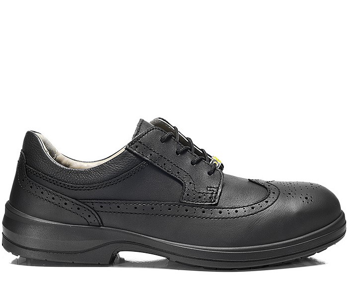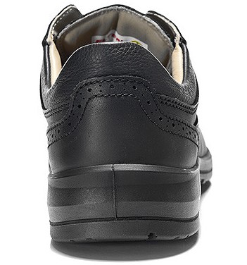 As an elegant black business safety shoe with leather upholstery, the OFFICER XXB ESD S2 is the ideal all-rounder for the most diverse requirements. Especially noble: the contrasting light-coloured leather lining. The SRC certified Mono-PU outsole can be used in a variety of ways and ensures a stable appearance with its slanted T-profile ribs. Extra comfort is provided by the sole core made of BASF's Infinergy® material - small beads of foam that provide optimum resilience. As a result, the wearer is given back energy with every step and tired joints can look forward to relief. The ESD-compatible safety shoe also has a steel toe cap and is available in sizes 39 to 49.