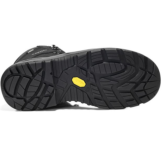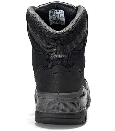 The RENEGADE Work GTX black Mid S3 CI from the LOWA Work Collection is a real powerhouse in terms of safety. The black safety boot not only impresses with its sporty design, it also convinces all along the line in terms of safety. The steel toe cap and steel midsole protect against sources of danger from above and below. To ensure that the wearer does not lose his footing, the boot is equipped with an SRC-certified VIBRAM ® GUMMI/PU outsole, which provides stability even on difficult surfaces. The hydrophobic nubuck leather and textile upper is durable and water repellent, withstanding the toughest outdoor conditions. The inner lining made of a GORE-TEX membrane always ensures a comfortable and balanced climate inside the shoe.
