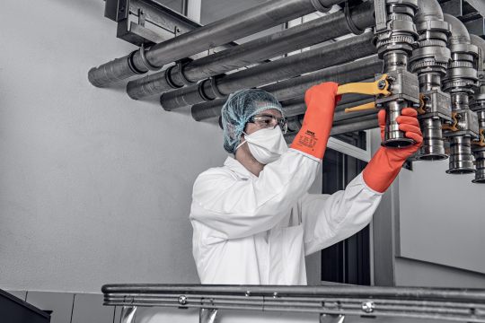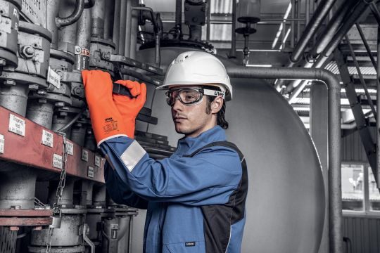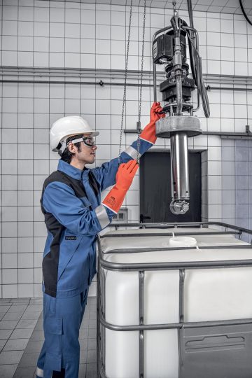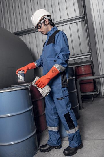 The uvex u-chem 3500 chemical protective gloves are ideal for handling many different chemicals. Thanks to full-surface chloroprene and NBR coating, results in a high grip safety and resistance to acetone, cleaning agents, adhesives and solvents. Fields of application: Cleaning agents, electroplating (cleaning, pre-treatment for corrosion protection), processing aluminium profiles, handling universal thinner, handling Loctite® adhesives surface treatment, maintenance work, solvents, paint shop, waste disposal industry. Standards: EN 388:2016 (3.1.2.1.X) EN 374-1: Type A (A.C.J.K.L.M.N.O.P.S.T) EN 407 (X.1.X.X.X) Other features: Chemical protective glove with cuff for handling a wide range of chemicals. Fully coated with chloroprene and nitrile rubber (NBR) Upper material made of cotton Very good grip on warm and wet workpieces Very good resistance to acetone, cleaning agents, adhesives and solvents Very good wearing comfort, thanks to seamless cotton liner Sizes: 7-11 VE: 100 / 10