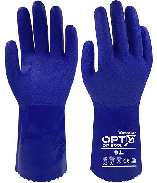 The OPTY™ OP-600L is our new glove for protection against chemical risks in dry, oily or wet environments. Thanks to the rough material on the palm, it offers excellent grip in any environment. The triple PVC coating ensures perfect resistance to oils. The seamless cotton inner lining ensures unparalleled dexterity. Thanks to the 30 cm length, the hands are fully protected. EN 374-1: AJK / A = methanol / J = n-heptane / K = sodium hydroxide 40 %.