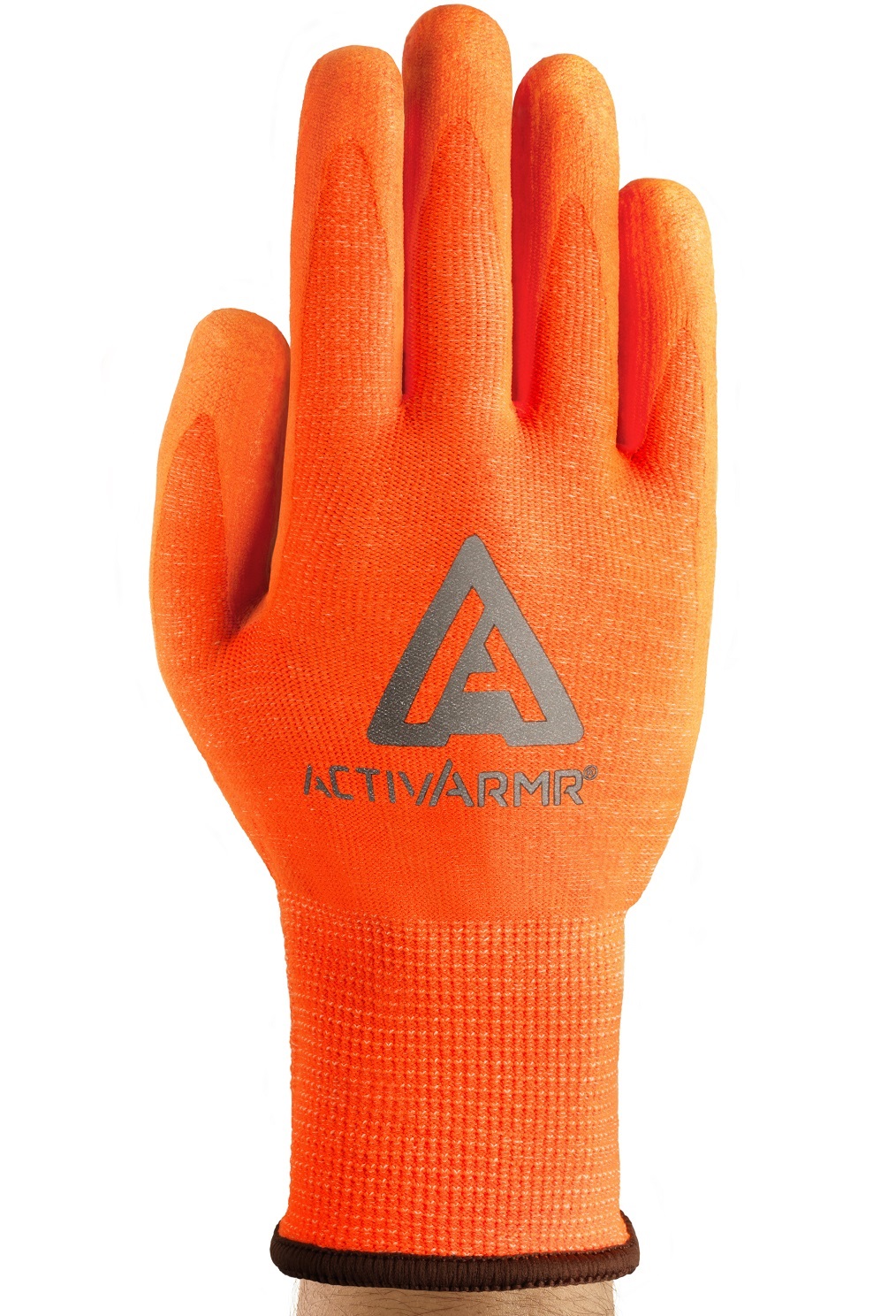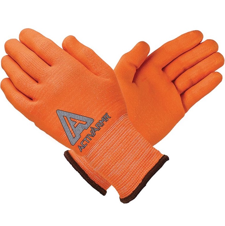 The ActivArmr 97-013 Medium Duty Hi-Viz is made of an orange carrier with a rugged coating that is also orange for high visibility. In poorly lit work areas, the reflective logo increases the wearer's visibility. Its outstanding abrasion resistance and medium cut protection level make it suitable for use in a wide range of applications. The perfect fit ensures comfort, finger dexterity and maximum control during demanding tasks throughout the working day. Better visibility in difficult lighting conditions increases safety.