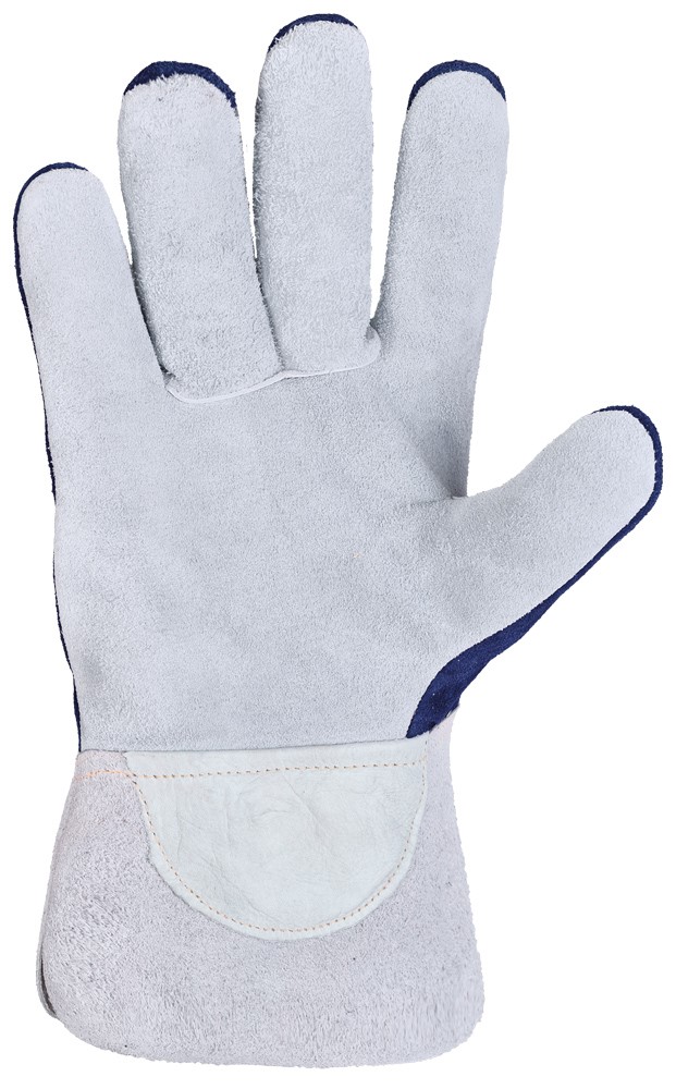 - Palm made of reversed full-grain leather, combined with blue split leather