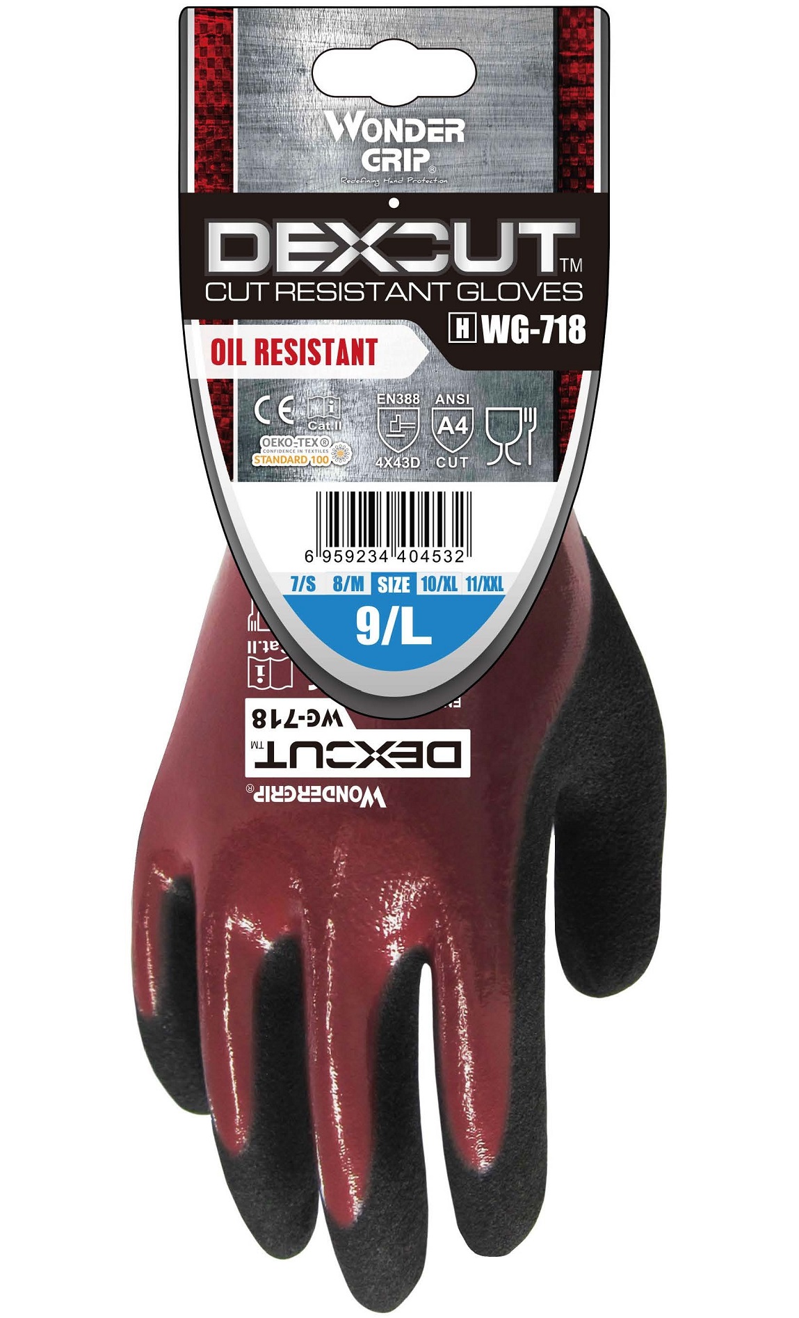 The Wonder Grip Dexcut Cut 5 features the unique flexible WG-787 inner glove strap and triple nitrile coating on the back. These gloves are best suited for working in wet or oily environments where special protection against cuts is required. Combining the highest EN 388 CUt 5 resistance grade and triple back coating, this glove is the ultimate industrial glove on the market.