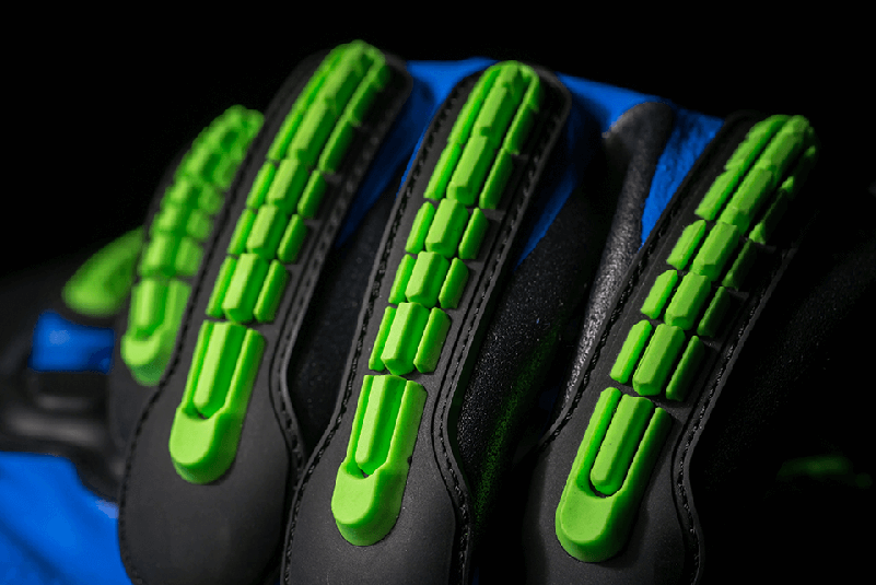 This glove with impact protection is designed to protect the most sensitive parts of the hand. It reduces impact energy to the knuckles, fingers and metacarpals. Fluorescent features provide high visibility for hand signaling. Foam surface dissolves oil to improve grip in wet, dry or greasy conditions. Seamless inner glove and latex-free design prevent skin irritation.