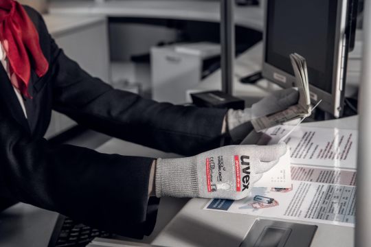 Protective gloves made in Germany meet Swiss technology: our innovative uvex phynomic silv-air and uvex phynomic silv-air grip protective gloves minimise the risk of contact infection from objects within five minutes. The revolutionary textile technology HEIQ VIROBLOCK by CHT inhibits the spread of bacteria and viruses on both glove models and inactivates 99.9% of microorganisms* there. The uvex phynomic silv-air protective glove is thus a perfect everyday companion in protecting against pathogens.
