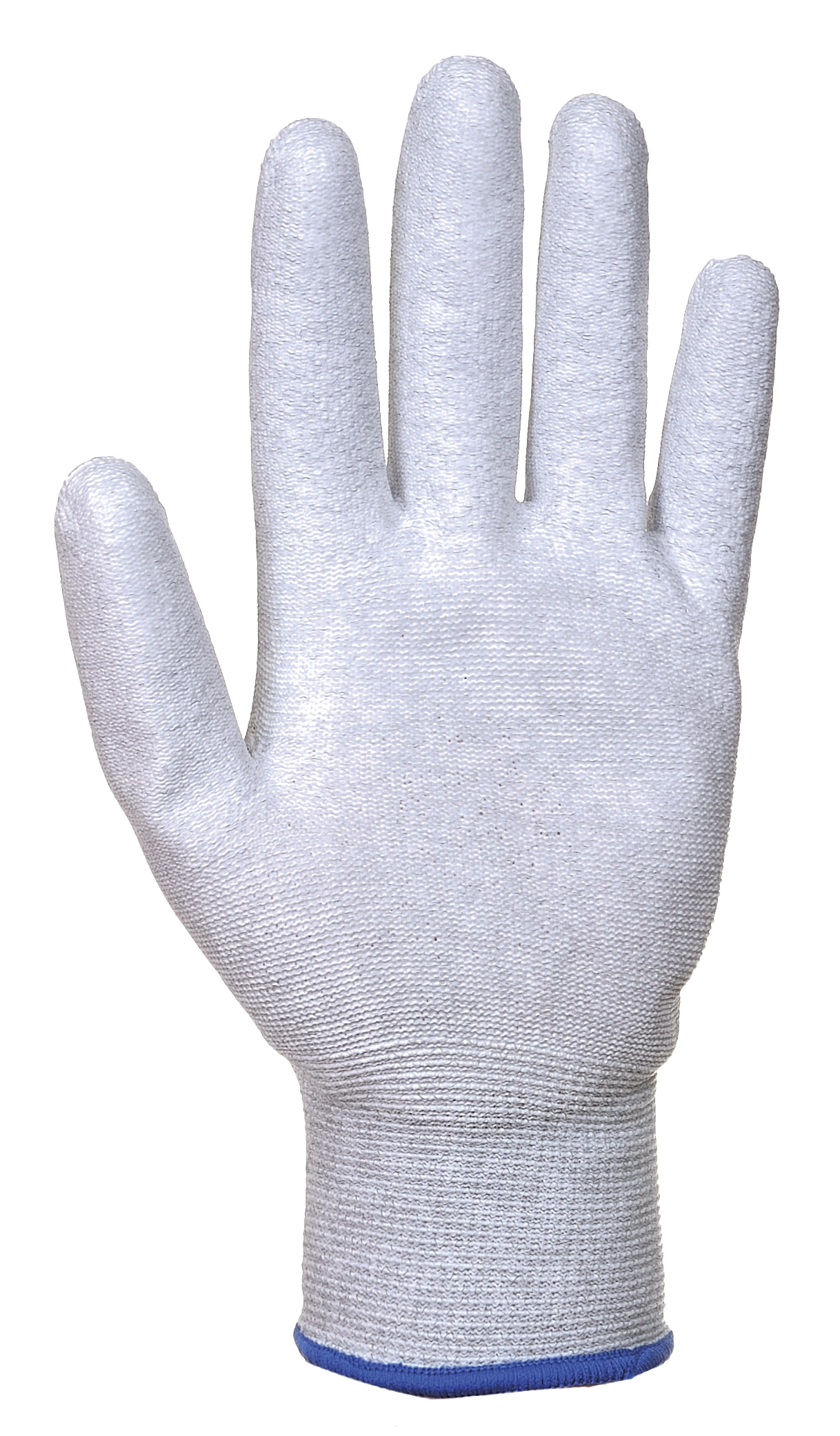 13g nylon and carbon fiber static dissipating glove with durable PU palm coating for excellent tactile feel. For use in electronics, metrology and precision work.