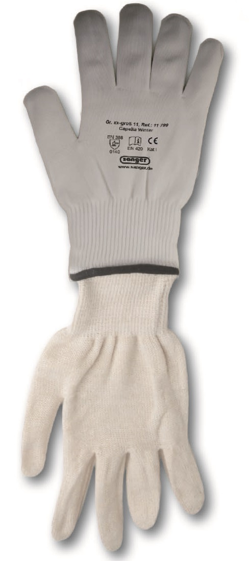 - Material: Seamless knitted polyamide outer glove (13G) with seamless knitted cotton inner glove (10G).