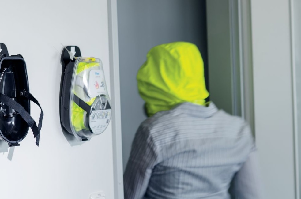 The Dräger PARAT® 5500 fire escape hood was developed together with users - always with a view to the fastest possible escape. With optimized ease of use and wearing comfort, robust housing and proven CO P2 filter, the Dräger PARAT® 5500 protects its wearer from toxic fire gases, vapors and particles for at least 15 minutes during escape. Particularly innovative and intuitive: When the packaging is opened, the filter plug automatically detaches from the filter. This pushes the filter out into its deployment position and the hood can be put on immediately. Thanks to elastic inner strapping, no additional tightening is necessary. All you need to do: open the packaging, remove the hood and put it on - and then leave the hazardous area.