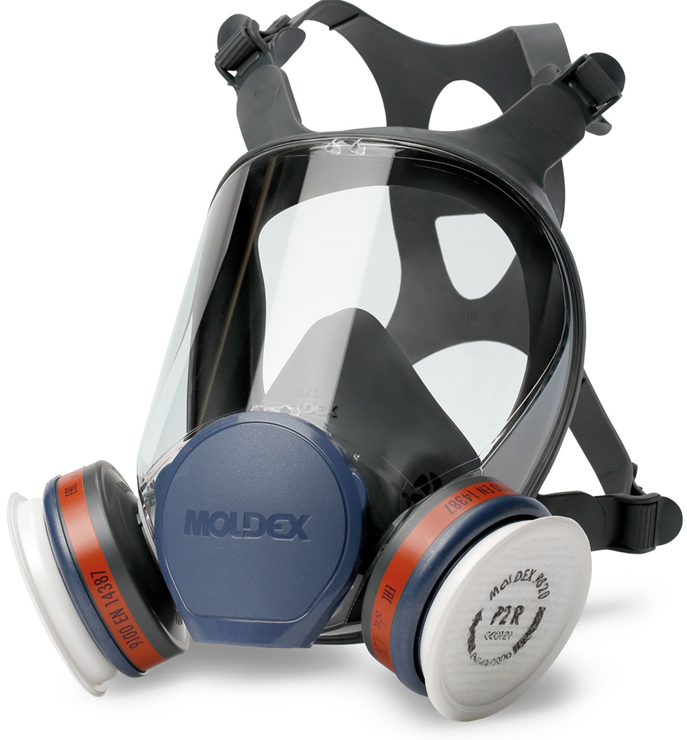 Series 9000 full-face masks can be easily combined with EasyLock® gas and particle filters, without any adapters or special prefilters. This offers high flexibility and easy stock-keeping. A frameless lens made of scratch-resistant, solvent-resistant polycarbonate protects the eyes and provides a wide field of vision. The wide-open strap and two convenient release handles allow easy on and off. The masks are low-maintenance, and replacement of the few spare parts and cleaning are quick and easy. An anatomical sealing lip gives the lightweight full-face masks a comfortable seal. Moldex full face masks are durable and meet the high requirements of class 2.