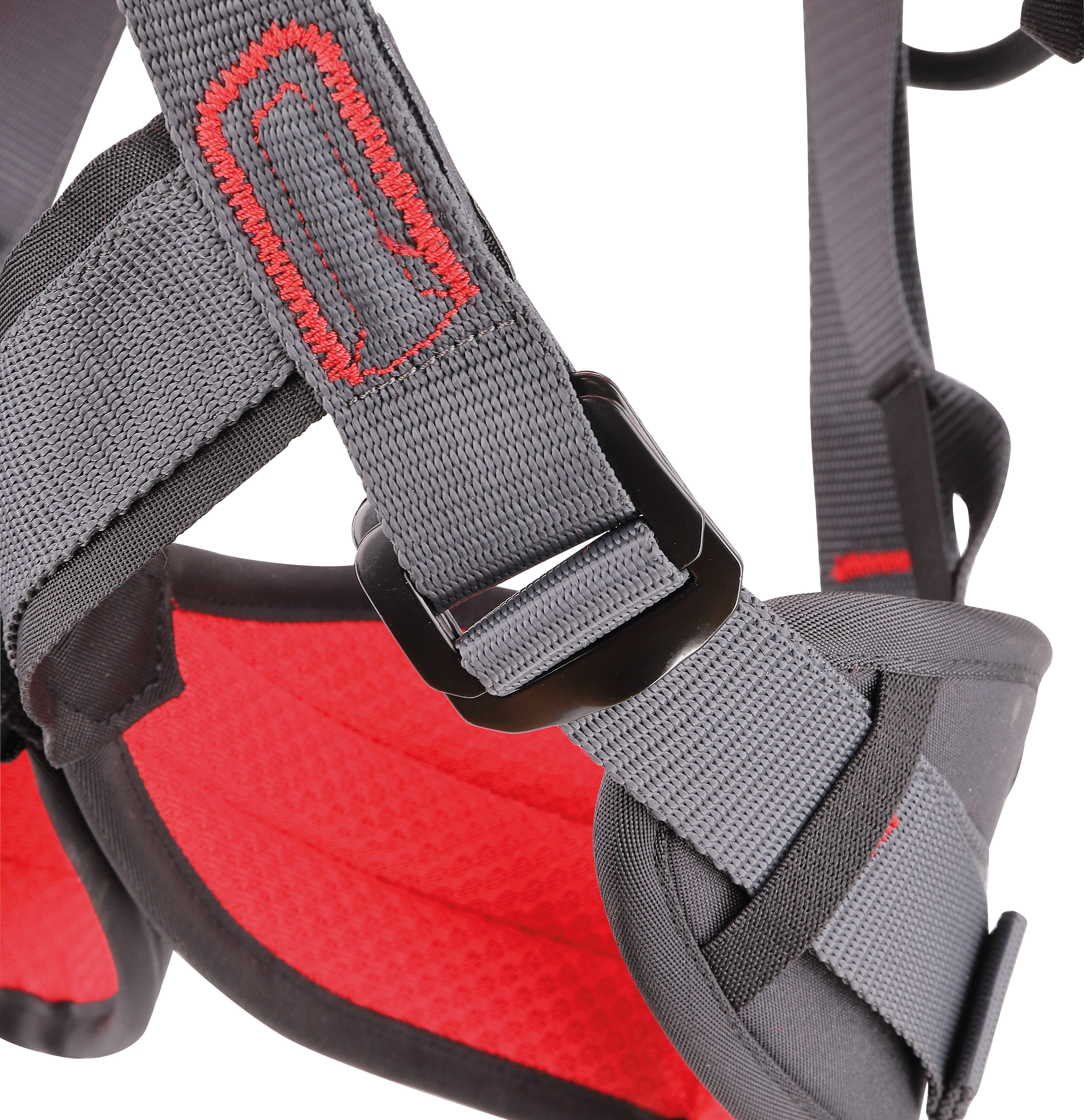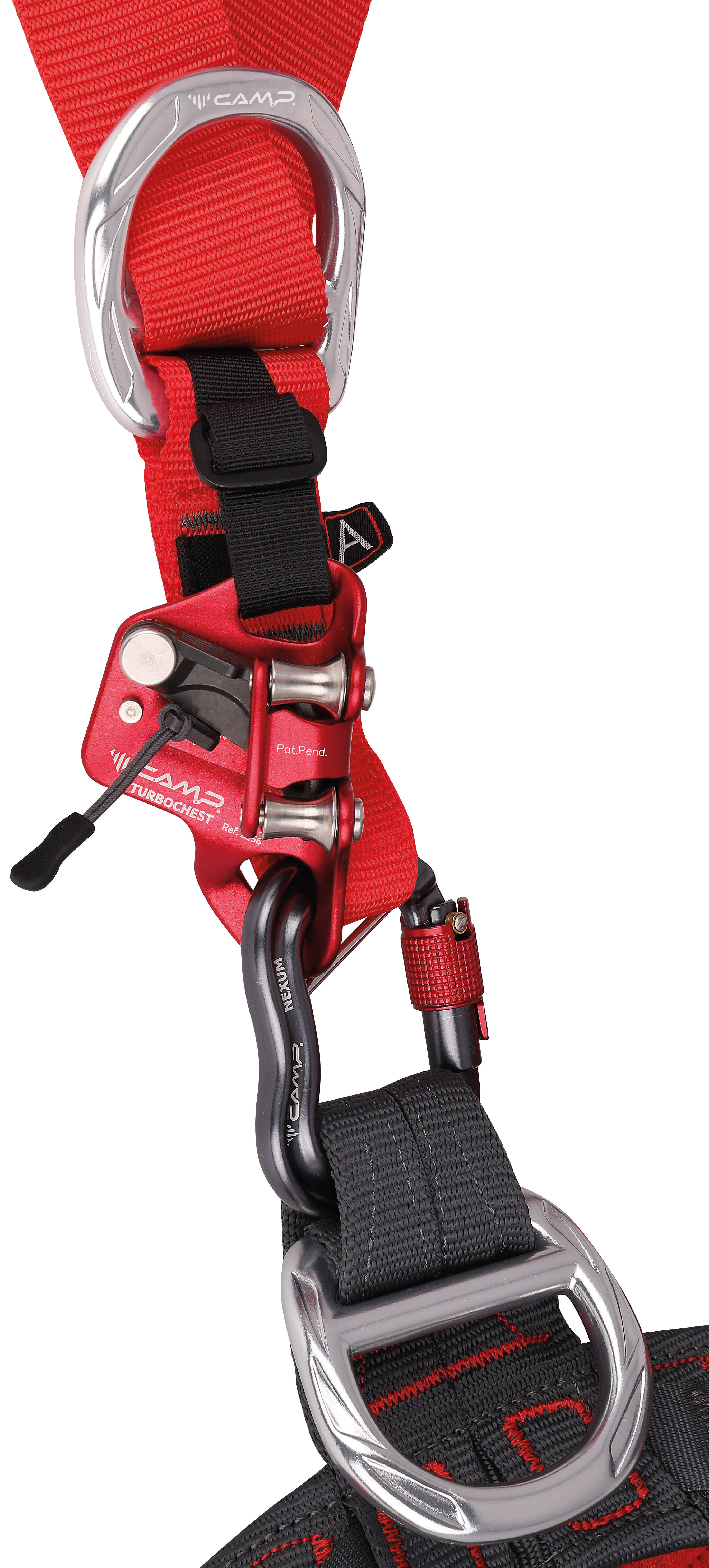 GT version without available options for one side and one connection. Developed on the basis of the recommendations made as a result of our "SUSPESI" research programme on suspension syndrome. All paddings, with different thickness and consistency, have been designed to properly support all body parts involved. Ventral attachment point characterised by two concentric rings: one serves as a seat for the aluminium ring (for attaching slings and devices), one serves as a connection to the chest harness and chest ascender. 5 aluminium attachment points: on the abdomen for free hanging, on the sides for work positioning and retention, on the sternum and on the back for fall arrest. Rear eyelet for restraint. Equipped with the innovative Nexum carabiner, characterised by great compactness for maximum comfort in the chest area, Keylock closure and 3Lock locking system, anti-rotation pin that can be opened to insert the Turbochest chest ascender. Connection point on the safety solutions on the shoulder straps, for attaching the lanyards when not in use. Equipped with NFC-TRACK chip for digital identification.