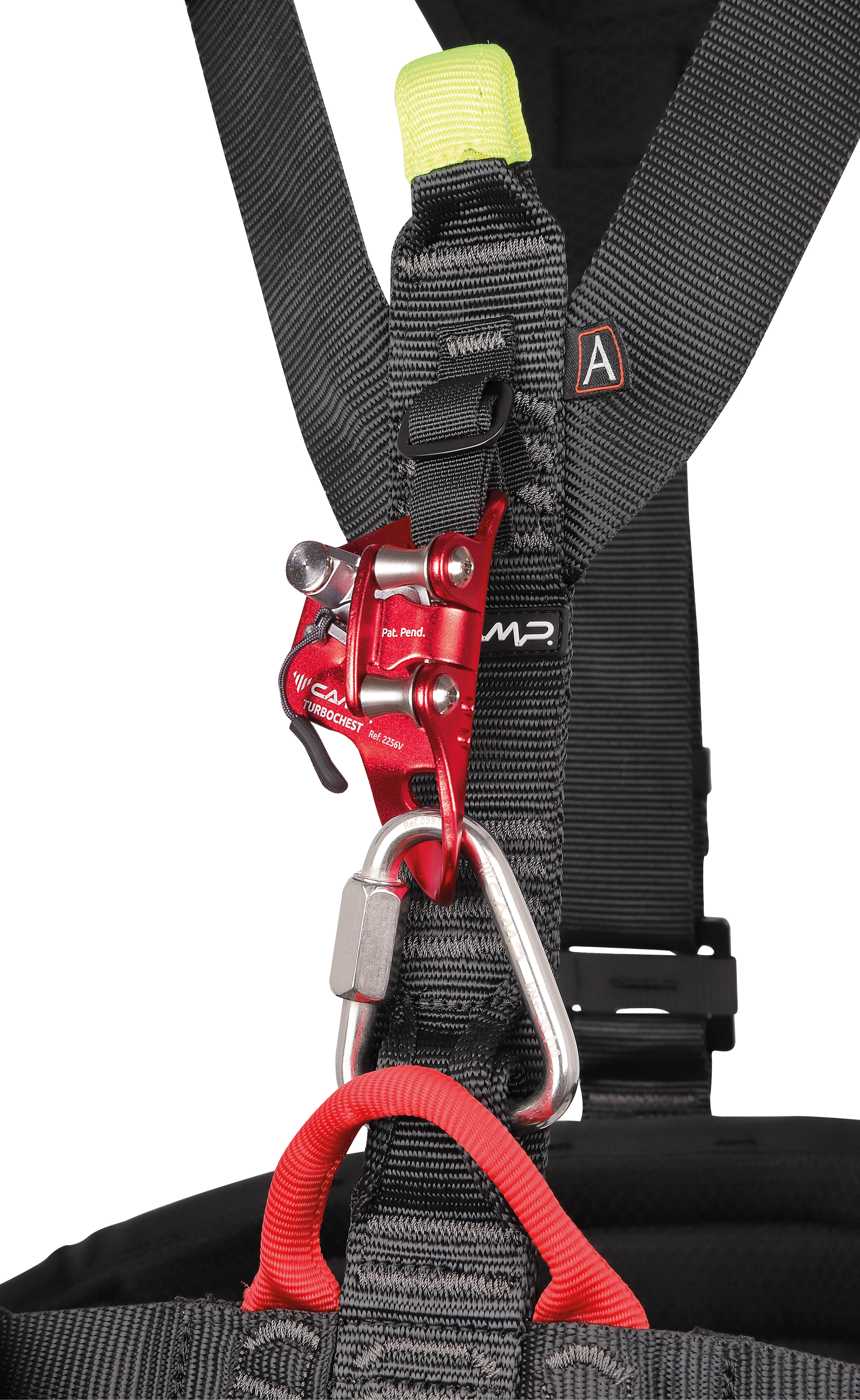 The RSQ Flex is an ultra-lightweight, ideal for technical repairs and seat repairs. The textile attachment points, traditional buckles on the leg loops and minimal padding are part of the compact and essential features. The other part of the gusset is designed to offer the best combination of hanging comfort and freedom of movement, while the padding in the chest area ensures excellent comfort in the neck area. The belly strap has a large eyelet for connection to a quick link or an openable ring for attaching the Turbochest chest ascender, which can be tightened over its own strap.