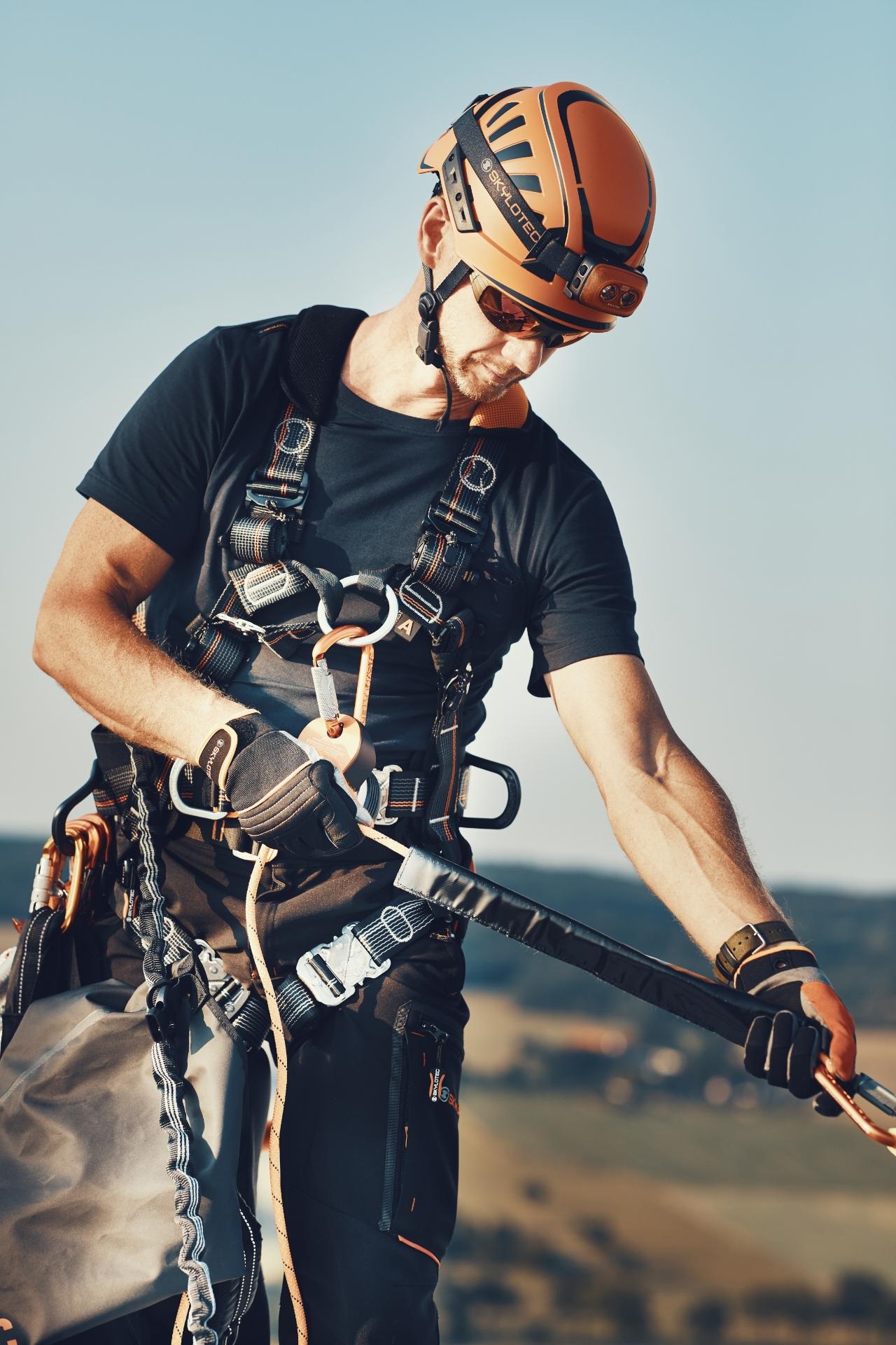 This fully equipped fall arrest, holding and climbing protection harness with plastic sliding plate was specially developed for wind energy. However, it is also used in many other areas where the highest demands on safety and functionality apply. IGNITE PROTON scores points with its thermoformed hip pad, which distributes the load evenly on the hips and is protected from abrasion from the outside with a protective plastic plate. The correct position of the safety eyelets can be perfectly adjusted to the user thanks to the ingenious design. Excess webbing is no longer a disturbing factor thanks to the practical webbing fixation. Shoulder and leg pads are washable or replaceable as required. Preformed material loops and tool loops for various applications make the harness a complete system.