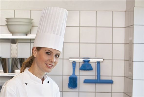 Wall mount for up to 4 products. Made of stainless steel and therefore well suited for food processing plants. The holder is easy to clean and hygienic in use. Well suited for cleaning equipment which must not touch the wall. Designed for open shutters.