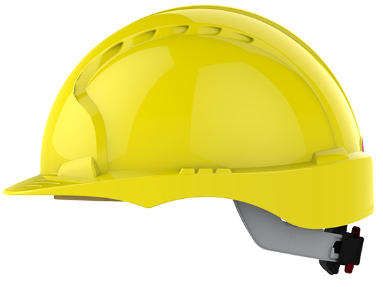 JSP EVO 3 Protective helmet Turning wheel lock Risk 4 1000V - non-ventilated in online shopThe MK3 Evolution Comfort Plus helmet combines the excellent protection thanks to the super-strong helmet shell with the comfort advantages of the Evolution 3D interior equipment. EVO®3 represents a true evolution of the popular MK2 and MK3 helmets, the first of which was launched in 1970. In tests, the EVO®3 clearly exceeded the stability required by the EN397 standard and is therefore much more stable than all its competitors Standards: EN397, EN50365 Shock absorption: 50 Joule Finishing with own logo possible Heat test up to +50 °C Cold test down to - 40 °C Textile belt system Electrical insulation: max. 1000V alternating voltage or 1500V direct current Colours: white, orange, blue, yellow, green, red PU: 10 piecesMaximum comfort The 6-point Terylene harness system and the Chamlon™ Egyptian cotton sweatband offer unparalleled comfort. Chamlon & rotary sweatband sweatband cotton sweatba