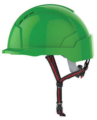 JSP EVOLite Skyworker - Safety helmet for working at heights Risk 4+ in the online shopThe EVOLite Skyworker helmet has a suspension system and a shell construction which was developed for industrial, mountaineering, rescue and leisure activities. Complies with EN12492 standard. A helmet, which corresponds to the climbing helmet standard, is tested for impact with two 5 kg heavy blows. A hemispherical firing pin is dropped from a height of 2 metres onto the crown of the helmet and a flat firing pin from a height of 500 mm to the front, rear or side by tilting the head to 30°. In all cases, the force transmitted through the neck of the head shape shall not exceed 10kN Standards: EN 12492, EN397* with ventilation openings Shock absorption: 100 Joule Side impact absorption: 50 Joule Finishing with own logo possible Heat test up to +50 °C Cold test down to - 40 °C Inner shell made of EPS Textile belt system Colors: white, black, blue, green, yellow, red, orange PU: 1 pieceEPS inner she