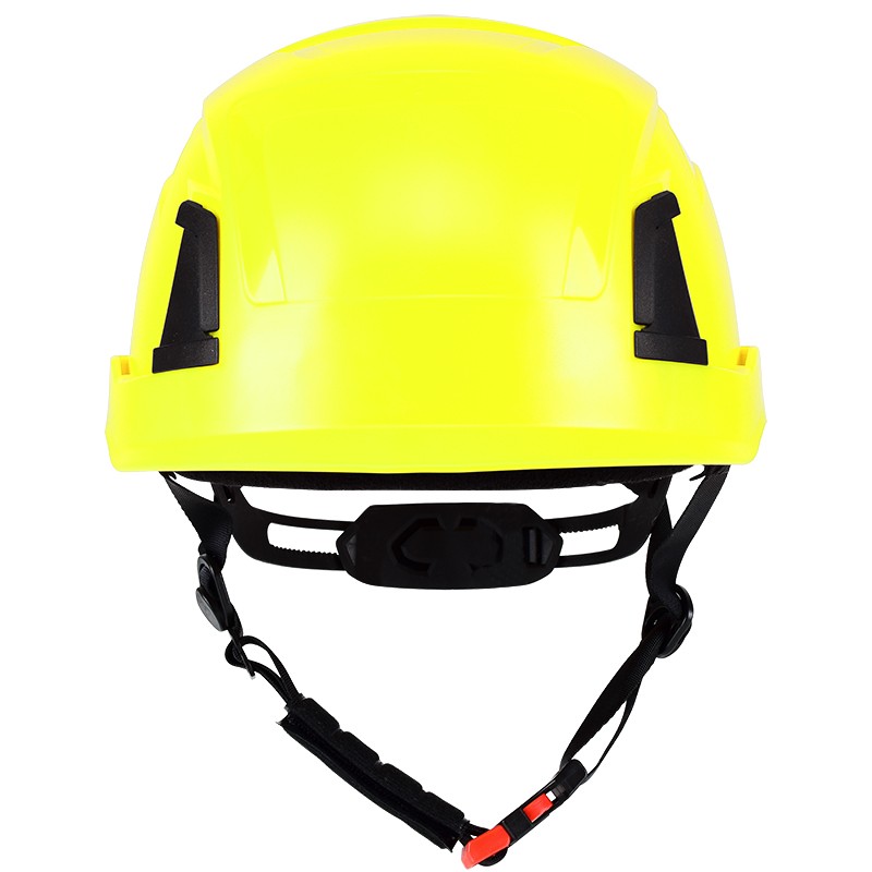 Pro Cap D!-Rock safety helmet, modern, light work safety helmet, as a height work helmet by the short roof and the mountaineer helmet after-simulated form, optimally suitable, high stretcher comfort by means of 6-point textile banding - highly tear-proof, exchangeable headband, simple adjustment of the headband, by means of a modern ratchet system, perfect climate, thanks to a new ventilation system - ventilation openings at the top (chimney effect), including mounted chin strap, neck guard, attachment of a headlamp possible, 30 mm plug-in pockets to accommodate all common helmet ear muffs and visor mounts