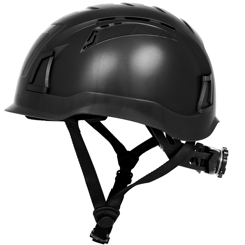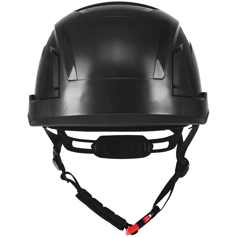 Pro Cap D!-Rock safety helmet, modern, lightweight work safety helmet, as a high altitude work helmet by the short roof and the mountaineering helmet modeled shape, best suited, high wearing comfort by means of 6-point textile banding - highly tear-resistant, replaceable headband, easy adjustment of the headband, by a modern ratchet system, perfect climate, thanks to a new type of ventilation system - ventilation openings on the top (chimney effect), including mounted chin strap, neck guard, attachment of a headlamp possible, 30 mm plug-in pockets to accommodate all common helmet ear muffs and visor holders.