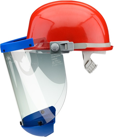 - Protective screen and helmet holder are made entirely of plastic