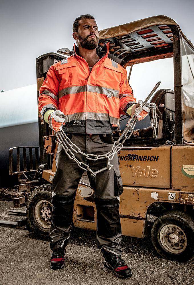 NITRAS MOTION TEX VIZ PLUS, warning protection pilot jacket, neonorange / blue, detachable sleeves, high-quality, removable polar fleece, detachable, unlined hood, two breast pockets and two side pockets, Smartphone pocket, sleeve pocket, napoleon pocket, inside pockets, circumferential Scotchlite™ reflective 3Mstripes, 2-way zip, detachable winter hood optionally available, breast pocket with inside loop for identification pockets