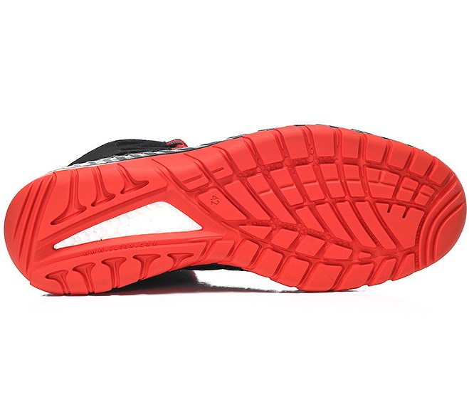 Sportlicher Look, tolles Laufgefühl - Ein völlig neues Laufgefühl und das in einem sportlich-schicken Sicherheitsstiefe – der Maddox black-red Mid ESD S3 überzeugt mit seinem besonders schlanken Design. Die moderne Laufsohle des Sicherheitsschuhs besteht im Kern aus dem modernen Dämpfungsmaterial Infinergy ® von BASF. Elastisch wie Gummi und super leicht gibt es beim Laufen einen Großteil der aufgewendeten Energie an den Träger zurück. Das spart an langen Arbeitstagen nicht nur unglaublich viel Energie, sondern schont auch langfristig die Gelenke. Sicherheit kommt beim Maddox black-red Mid ES S3 nicht zu kurz: eine Stahlkappe schützt den Vorfußbereich vor Gefahren von oben. Diemetallfreie Durchtritthemmung schützt vor spitzen und herumliegenden Gegenständen und wehrt Gefahren von unten erfolgreich ab. Das atmungsaktive Textilfutter des ESD-fähigen Sicherheitsschuhs sorgt für ein ausgewogenes Fußklima. Das Obermaterial aus hydrophobiertem Mikrofaser und Textilmaterial macht den Schuh strapazierfähig, die TPU/PU Laufsohle ist SRC zertifiziert und gibt damit auch auf rutschigen Böden sicheren Halt.