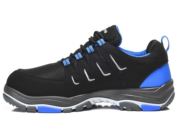 Stahlkappe und ein metallfreier Durchtrittschutz wehren Gefahren von oben und unten erfolgreich ab. Die rutschhemmende TPU/PU Laufsohle mit Wabenstruktur für einen verbesserten Halt auf glatten Böden und ergonomische Drehpunkte zum leichten Drehen auf der Stelle bieten ideale Grundvoraussetzungen für Indoor-Tätigkeiten auf Hallen- oder Industrieböden. Der Halbschuh ist im Größengang 40 bis 48 verfügbar.