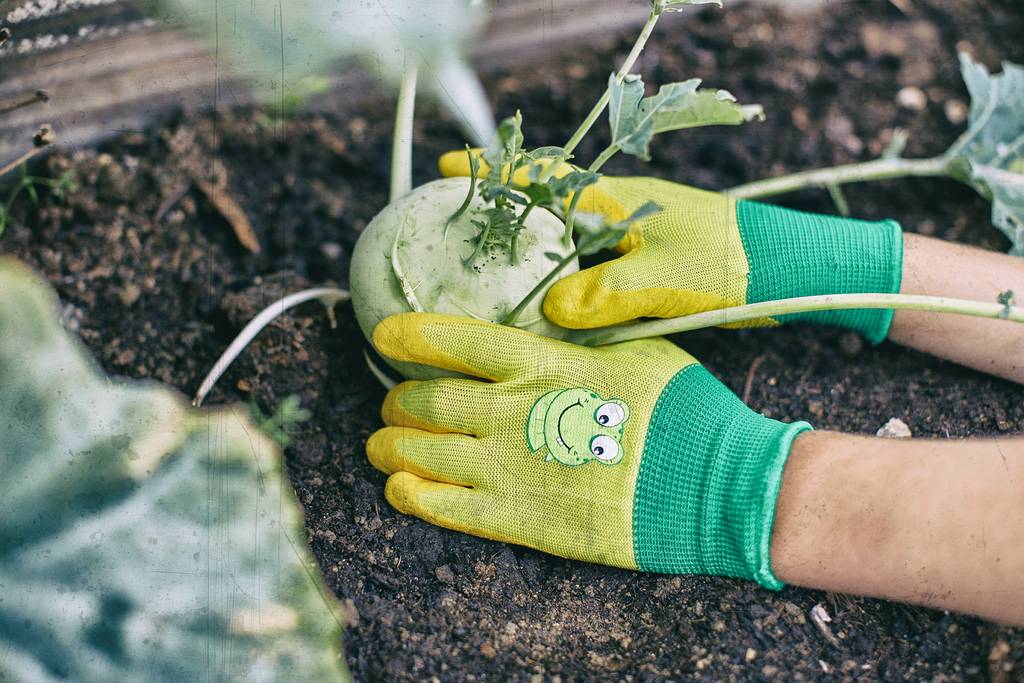 Der Gebol Froggy schützt die zarten Hände der kleinen Hobbygärtner perfekt. Der Froggy ist feuchtigkeitsabweisend, atmungsaktiv und passt sich den Kinderhänden optimal an