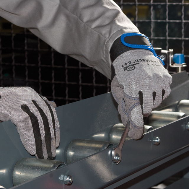 Extrem widerstandfähiges Kunstleder bietet guten Schutz bei mechanischen Arbeiten. Gleichzeitig bietet der RewoMech® 641 dem Anwender eine gute Griffigkeit auch bei nassen Teilen und schützt die Innenhand durch die eingesetzte Tyvek®-Folie vor Feuchtigkeit und Öl. Der Handrücken besteht aus leichtem, elastischen Textil für den perfekten Sitz. Der Handschuh ist atmungsaktiv und stellt die Alternative zum herkömmlichen Lederhandschuh dar. Seine Passform ermöglicht langes und ermüdungsfreies Arbeiten. Seine Feinfühligkeit erlaubt auch Arbeiten mit filigranen Gegenständen. Die Stulpe ist mit einem Klettverschluss versehen.