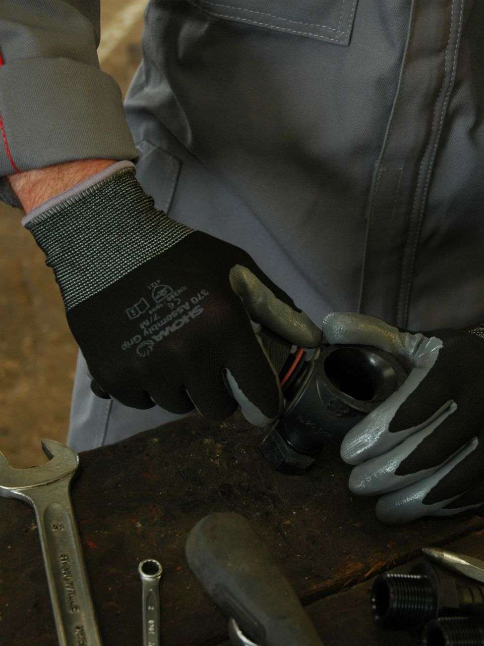 Diese haltbaren Handschuhe bieten eine ultimative Griffsicherheit und besten Komfort und sind perfekt für Präzisionsarbeiten und allgemeine Montagearbeiten. Mit ihrer einzigartigen, eng anliegenden Form und dem ergonomischen Design passen sie wie eine zweite Haut und erlauben eine unübertroffene taktile Präzision. Bei den 370B werden dunkle Farben verwendet, um Tragespuren in schmutzigen Umgebungen zu vermeiden. Das elastische Bündchen verhindert, das Schmutz in die Handschuhe eindringt.