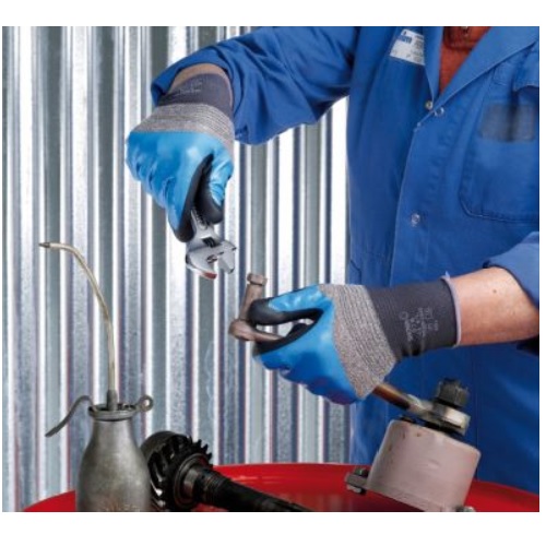 Diese flüssigkeitsbeständigen Handschuhe schützen mit einer doppelten Nitril-Außenschicht vor dem Eindringen von Flüssigkeiten. Die Schaumstoffbeschichtung über Nitril sorgt für Sicherheit mit einem saugfähigem Griff, auch bei Arbeiten mit öligen Komponenten. Das extralange, elastische Bündchen verhindert das Eindringen von Schmutz und Ablagerungen in den Handschuh, und das nahtlose Innenfutter reduziert Hautreizungen und Unbehagen.