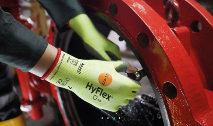 Der Hyflex 11-422 ist ein nahtloser Strickhandschuh (13-Gauge). Aus gut sichtbaren Hochleistungsfasern mit der Techcor®-Stricktechnik hergestellt. Innenhand beschichtet. Wasserbasierte, mit einem umweltfreundlichen Verfahren hergestellte, innovative Beschichtung. Silikon- und DMF-frei. Gute Abrieb- und Schnittfestigkeit. Hitzebeständigkeit bis 100° C. Dieser Handschuh ist mit einem Indikator (Orange) versehen, der Teil eines Farbcode- Systems zur Kennzeichnung der Schnittschutzstufe ist: 1 (Grün), 3 (Orange), 5 (Rot).