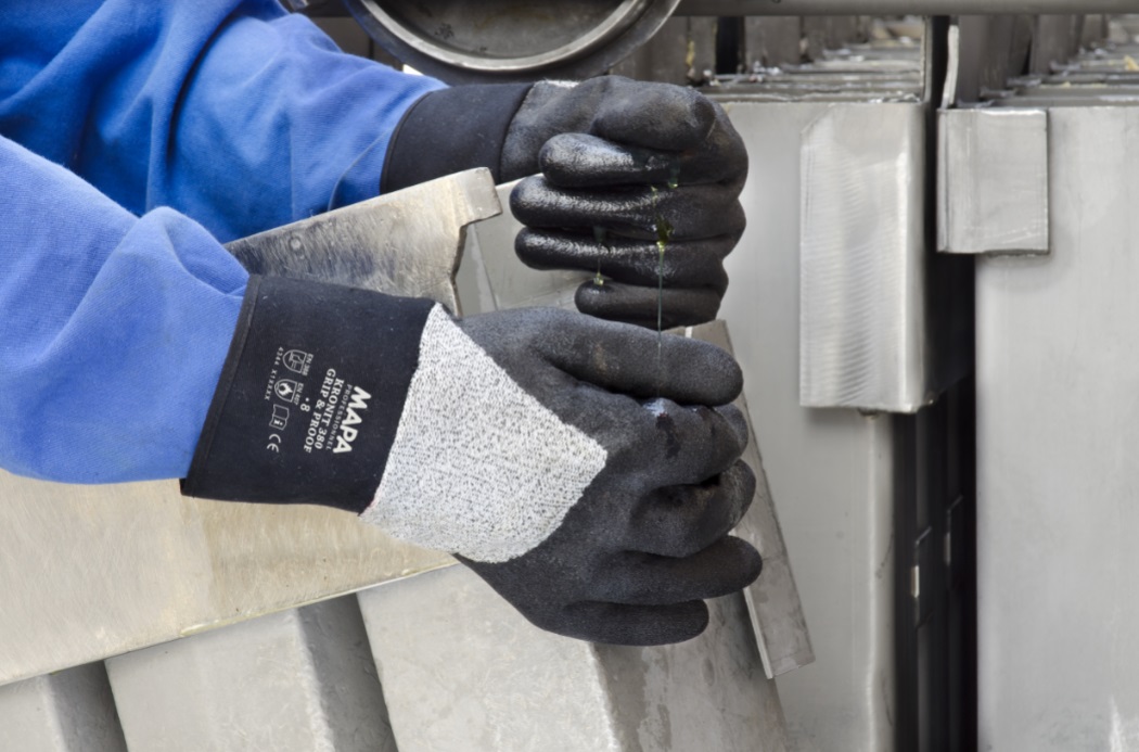 Bester Schnittschutzhandschuh für grobe Arbeiten in öligen Bereichen. Hervorragender Grip für mehr Sicherheit und Produktivität. Ausgezeichnete Haltbarkeit bei starken mechanischen Belastungen. Schutz der Haut vor Öl und Feuchtigkeit an den beschichteten Stellen. Schnelles An- und Ausziehen, verringertes Risiko des RSI-Syndroms, sowie gute Belüftung der Hand durch die Sicherheitsstulpe. Anwendung: Mechanische Industrie, Automobilindustrie: Pressen von Metall, Umgang mit Blechen, mit Teilen, die aus der Presse kommen. Mechanische Industrie: Stanzarbeiten in sehr öligen Umgebungen, Schneid-, Stanz- und Prägearbeiten.
