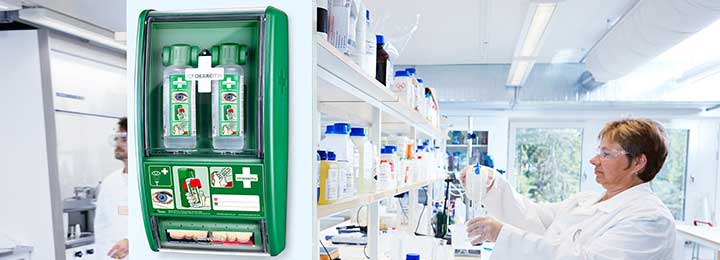 Einfach und funktionell. Zum Sortiment gehören unter anderem Verbraucherprodukte für die Wundversorgung und Erste Hilfe für alle Arten von Arbeitsplätzen bei Gewerbekunden ( Industrie. Handwerk, Dienstleistung, Verwaltung) Ergänzt wurde das Sortiment noch durch Augenspüleinrichtungen und neu Produkte für die Wundpflege und Reinigung.