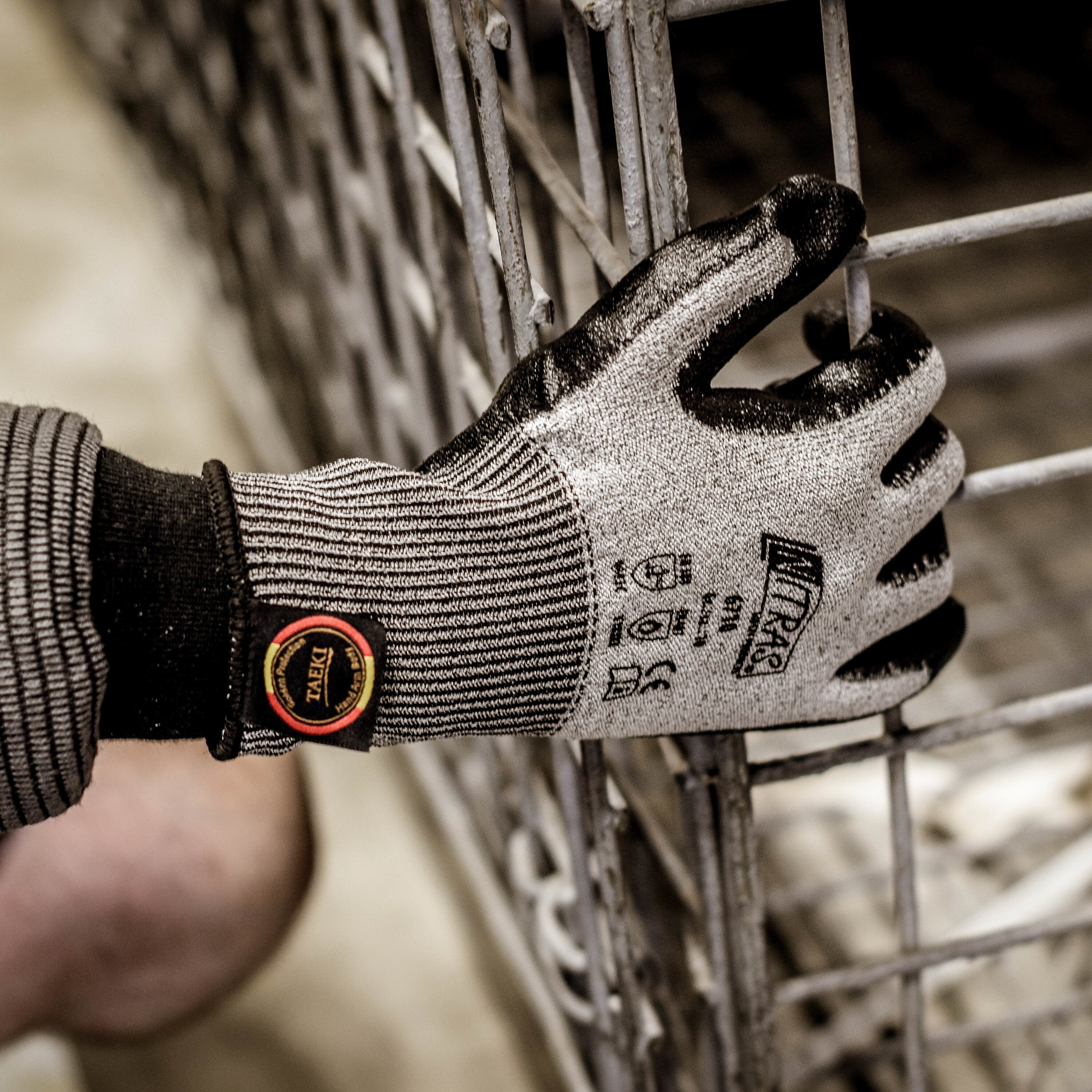 NITRAS TAEKI5 Schnittschutzhandschuhe, grau, Nitril-Beschichtung, teilbeschichtet auf Innenhand und Fingerkuppen, schwarz, Strickbund, höchster Schnittschutz (Leistungsstufe 5), höchster Tragekomfort, höchste Fingerfertigkeit, TAEKI5-Spezialgarn.