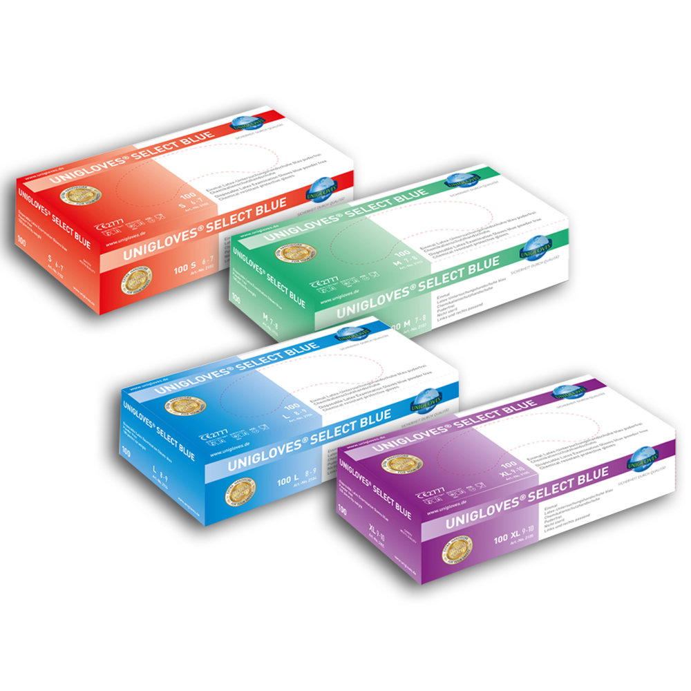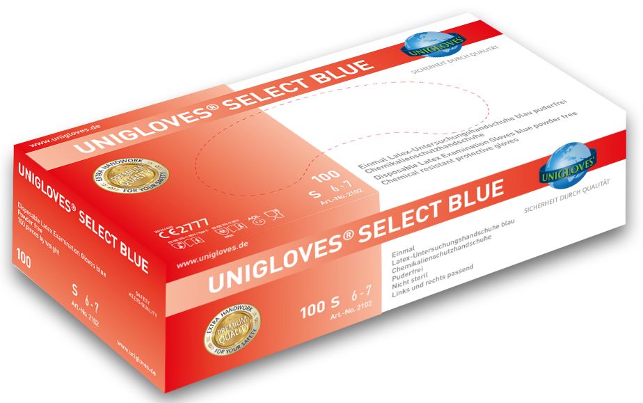 Produktinformationen "Unigloves Select Blue Latex-Einweghandschuhe puderfrei"