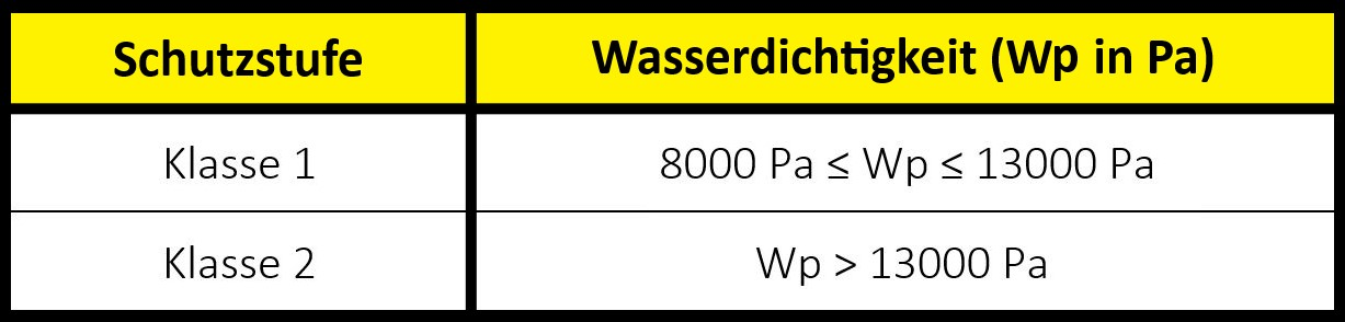 Der Test zur Wasserdichtigkeit eines Kleidungsstücks ist wie für die EN 14058 auch optional für die Zertifizierung nach EN 342. Wird dieser Test durchgeführt, so läuft er nach dem gleichen Verfahren ab wie der Test des Wasserdurchgangswiderstandes nach EN 343. Die Wasserdichtigkeit wird ebenfalls als Wasserdruck in Pascal angegeben, allerdings gibt es hier im Vergleich zur EN 343 nicht 4, sondern nur 2 Klassen, in die ein Kleidungsstück eingestuft werden kann. Klasse 2 bietet hierbei den höheren Schutz. Falls dieser Test durchgeführt wird, muss auch der Wasserdampfdurchgangswiderstand nach EN 343 geprüft werden, wobei der Ret-Wert nicht höher als 55 m2 Pa/W sein darf.