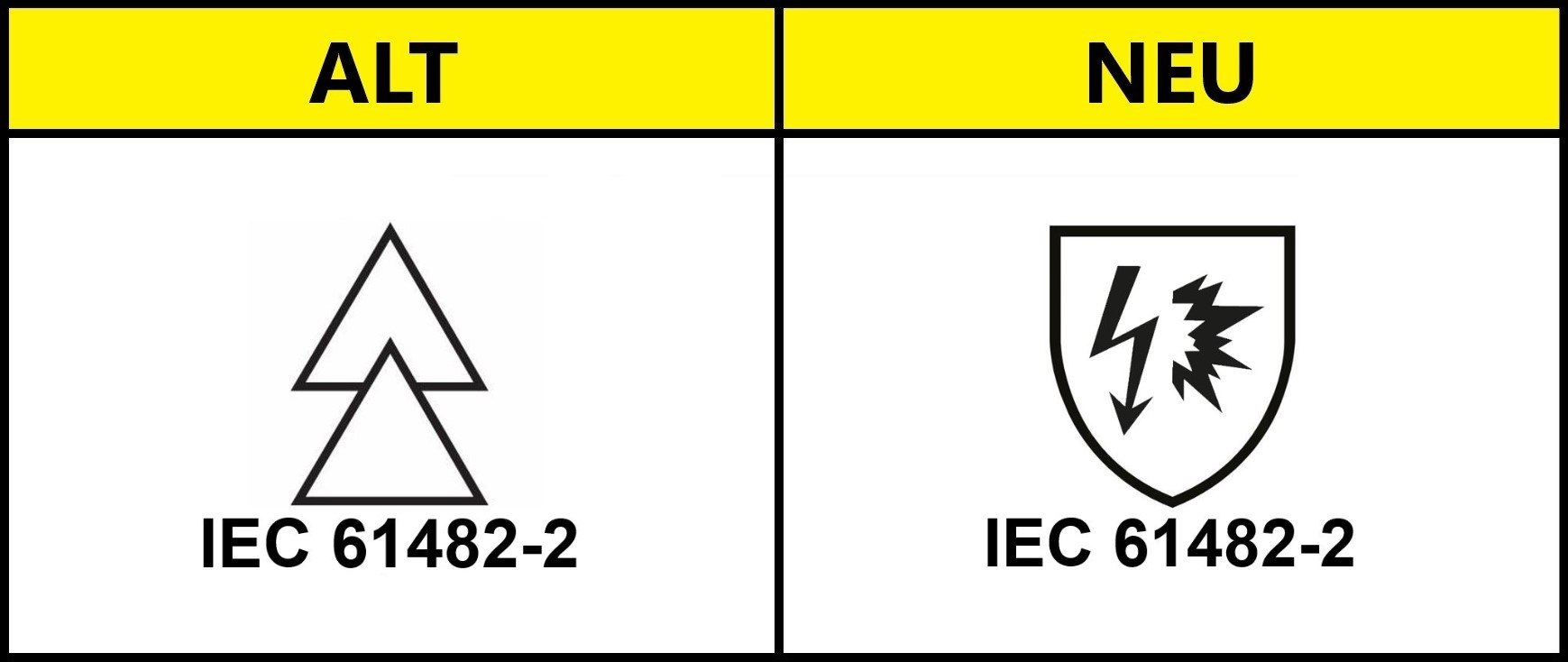 Die internationale Norm IEC 61482-2 legt die Anforderungen und Prüfverfahren für Schutzkleidung gegen die thermischen Gefahren eines Lichtbogens fest. Im Vergleich zu allen anderen PSA-Normungen ist diese häufig nicht mit "EN", sondern mit "IEC" betitelt, da sie von der International Electrotechnical Commission (IEC) stammt. Schutzkleidung der Norm IEC 61482-2 schützt den Träger vor Flammen, Strahlung und flüssigen Metallspritzern von Elektroden im Falle einer Lichtbogenexplosion bzw. eines Lichtbogenüberschlags und verhindert somit, dass dieser Verbrennungen zweiten Grades erleidet. Beispielhafte Arbeitsbereiche, in denen Schutzkleidung nach IEC 61482-2 empfehlenswert ist, sind die Wartung von Geräten in nicht-lichtbogengesicherten Bereichen oder Arbeiten an Hochspannungsgeräten. Beide der oben abgebildeten Piktogramme symbolisieren die Zertifizierung eines Kleidungsstücks nach IEC 61482-2, wobei das rechte die aktuellere Darstellungsform ist. Da aber beide Piktogramme zulässig sind und dasselbe aussagen, wird auch häufig noch das alte Piktogramm verwendet. Für die Prüfung der Norm stehen zwei Prüfverfahren zur Auswahl, der Open Arc Test (nach IEC 61482-1-1) und der Box Test (nach IEC 61482-1-2), welche im Folgenden näher beschrieben werden.